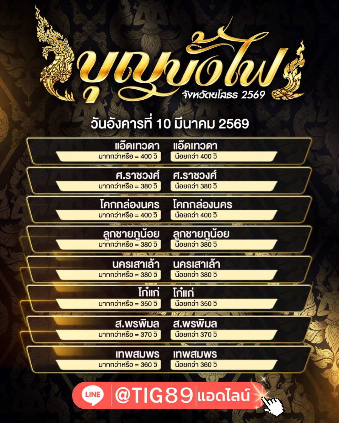 เว็บแทงบั้งไฟสด 2569 ที่เปิดให้ แทงบั้งไฟ แบบสดๆ ครบทุกจังหวัด ครบทุกรายการ แทงได้ทุกบั้ง พร้อม ดูสดๆ เดิมพันเริ่มต้นที่บั้งละ 10 บาทต่อบั้ง แทงเวลา ขึ้น - ลง แทงบั้งไฟสเต็ป ผสมกันได้ 2 -10 คู่ มีแอดมินให้บริการ ตลอด 24 ชม. >> @TIG89 (มี@ด้วยนะคะ)